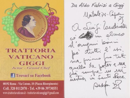"A Luigi Tondinelli cò un elenco d’auguri boni pè tutti l’usi, ma primo fra tutti quello de potesse magnà sempre una minestra in Santa Pace. Aldo Fabrizi."